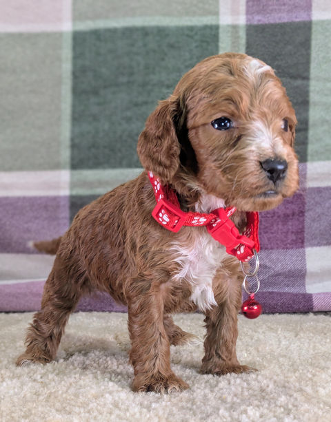 Portia (Cocker Spaniel) & Tinker (Miniature Poodle) have give birth to a litter of 4 boy pups and 4 girl pups on the 17th of October. Pups will be looking to go to their new homes from 12th of December. Puppies will never suffer with Progressive Retinal Atrophy PRA of the eyes, or Von Willebrand Disease (Type 1.). Copy of certificates will be provided. More pictures available on request.